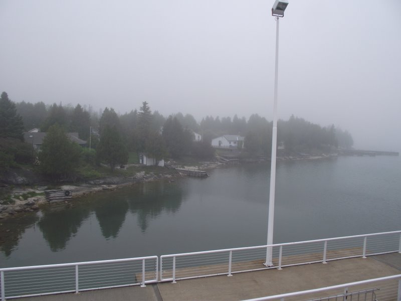Try saying “Chi-Cheemaun” 5 times fast. Doesn’t it just make you want to dance? It means “big canoe” and suits its bearer perfectly well. The Chi-Cheemaun ferry takes cars and passengers from Manitoulin Island to the nautical Cape Cod-ish town of Tobermory at the north end of Bruce Peninsula and I’ve heard it’s a lovely trip. I can vouch for the ride but as for the lovely part, I’m sorry to say that thick fog prevented us from seeing much. The two hour ride allowed me time to catch up on my hand-quilting so all was not lost.