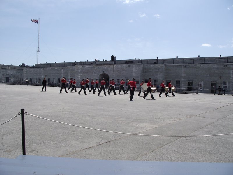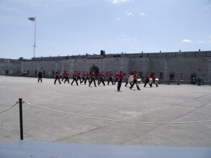 ely neighbours. We cruised the downtown core in the morning with its farmers’ markets, antique kiosks, and waterfront eateries then headed up the hill to Fort Henry. Guess who we found? The Red Coats, of course! Dressed in their woolen red finery these guys entertained us with a tour, marching drum practice, and the highlight; fife and bagpipe renditions of Loch Lomond. I was expecting them to “trip the light fantastic” at any moment. (Amanda, thank you for calling during the drum march to tell us about our little one’s heartbeat! So very exciting!)