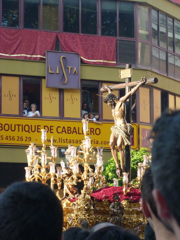 Semano Santo is something to behold. 2 ton floats carried, yes, carried on the backs of their necks, men rock the massive structure depicting one aspect of Jesus’ passion, for 20 minutes, then a shift change and another group of penitentials takes over. We saw their feet shuffle by underneath the skirting. Today we came across several men with bandages just below their back hairline.