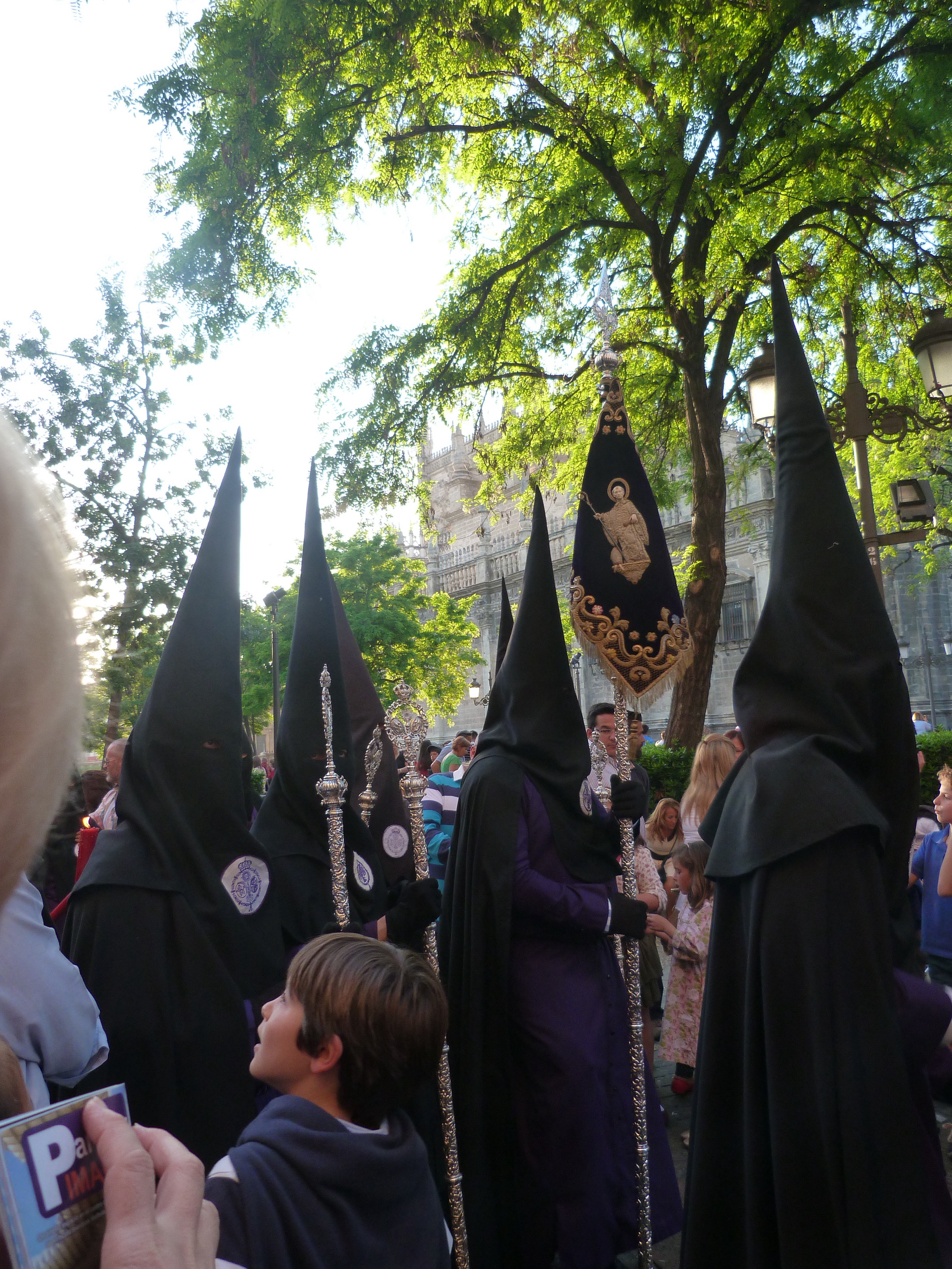 Drumming bands, children in costume, pointy-headed candle-carrying processioners and thousands upon thousands of Sevillians remember Easter this way. Apparently, the hype builds until Sunday. I am not sure how we’ll make our get-away on Good Friday so stay tuned.
