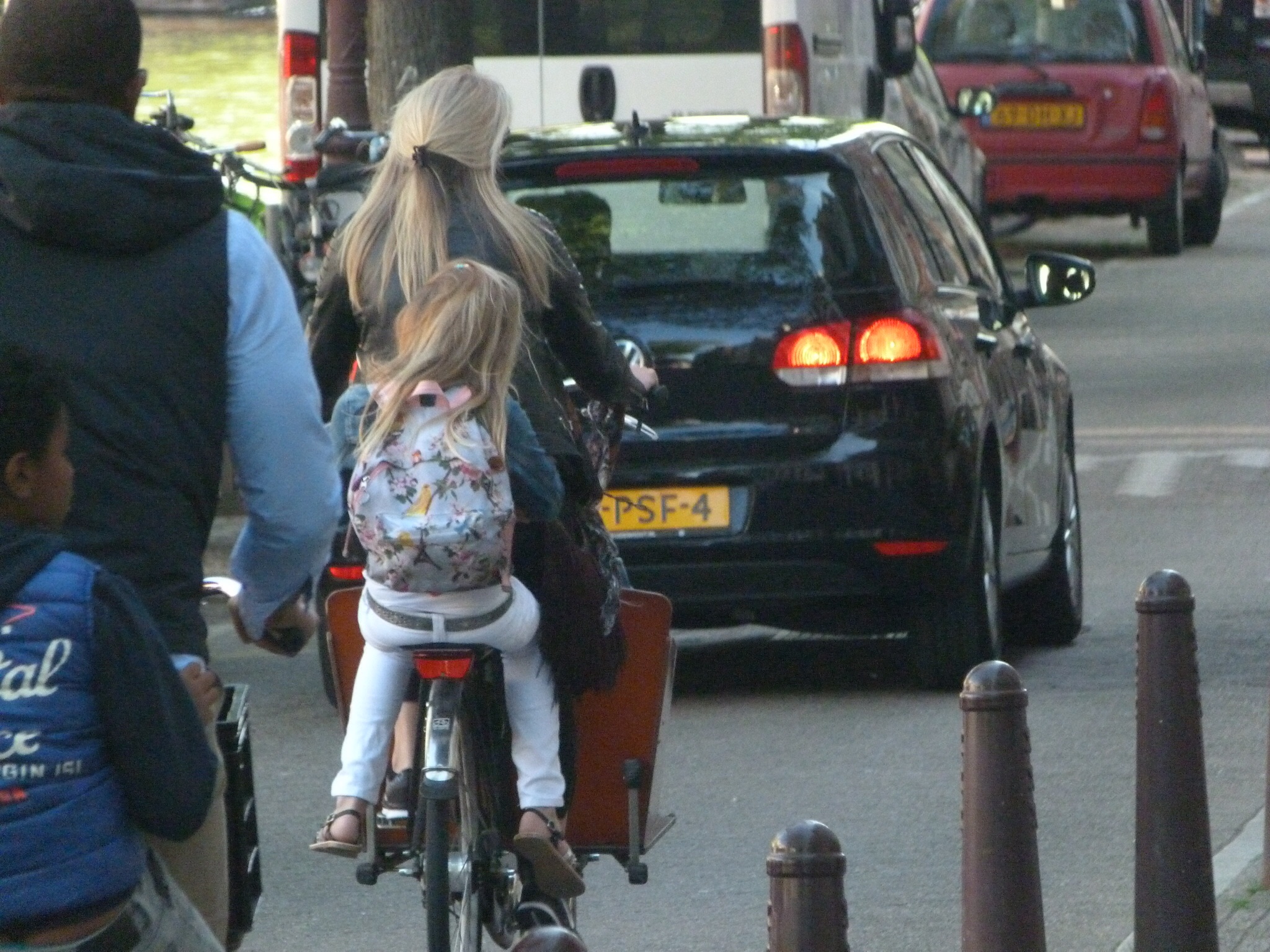 We’d been out about an hour when the city began to stir and the cyclists, which is everyone, glided silently but swiftly to work and school. The children typically ride in a bucket of sorts attached to the front of the bike where they read, eat, sing and chat away — quite helmetless — with a parent or grandparent at the controls.