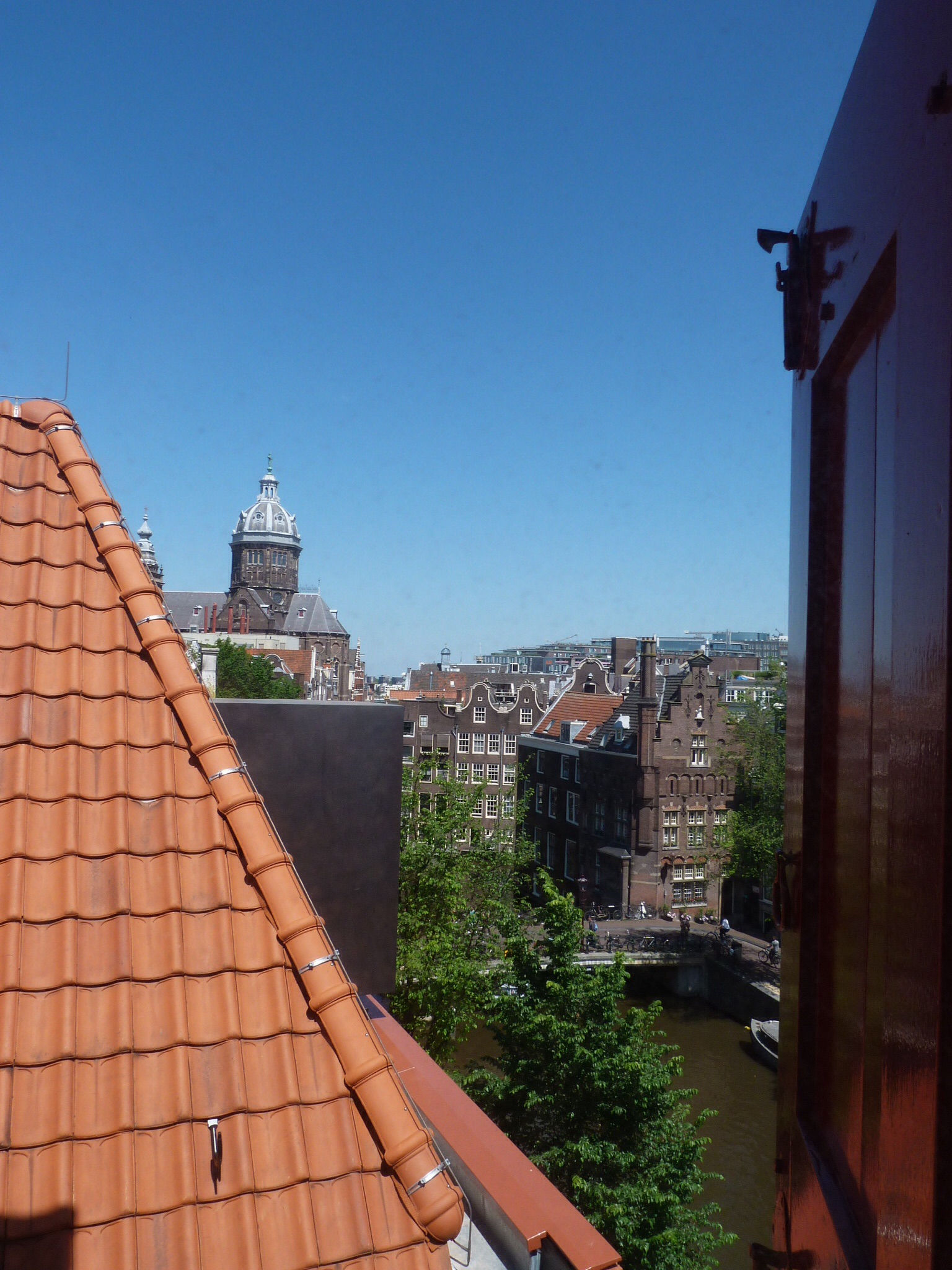 Yesterday we headed out early to Amsterdam Central, the main train station and the start-point to our city walk. The crowds were sparse — oh, wait…what crowds?! We had the city to ourselves so we wandered about the pedestrian-only streets along the shopping district and flower markets, where one can normally find “start-your-own-bonsai-kit,” tulip bulbs and cannabis seed packs. Marajuana is sold as a legal stimulant on the main drag (no pun intended) “coffeeshop” outlets and the pong in the air means the rest of us get a little high, whether we want to or not. At 6:30 am we avoided inhaling anything but the smell of the sea and the aroma of first coffee.