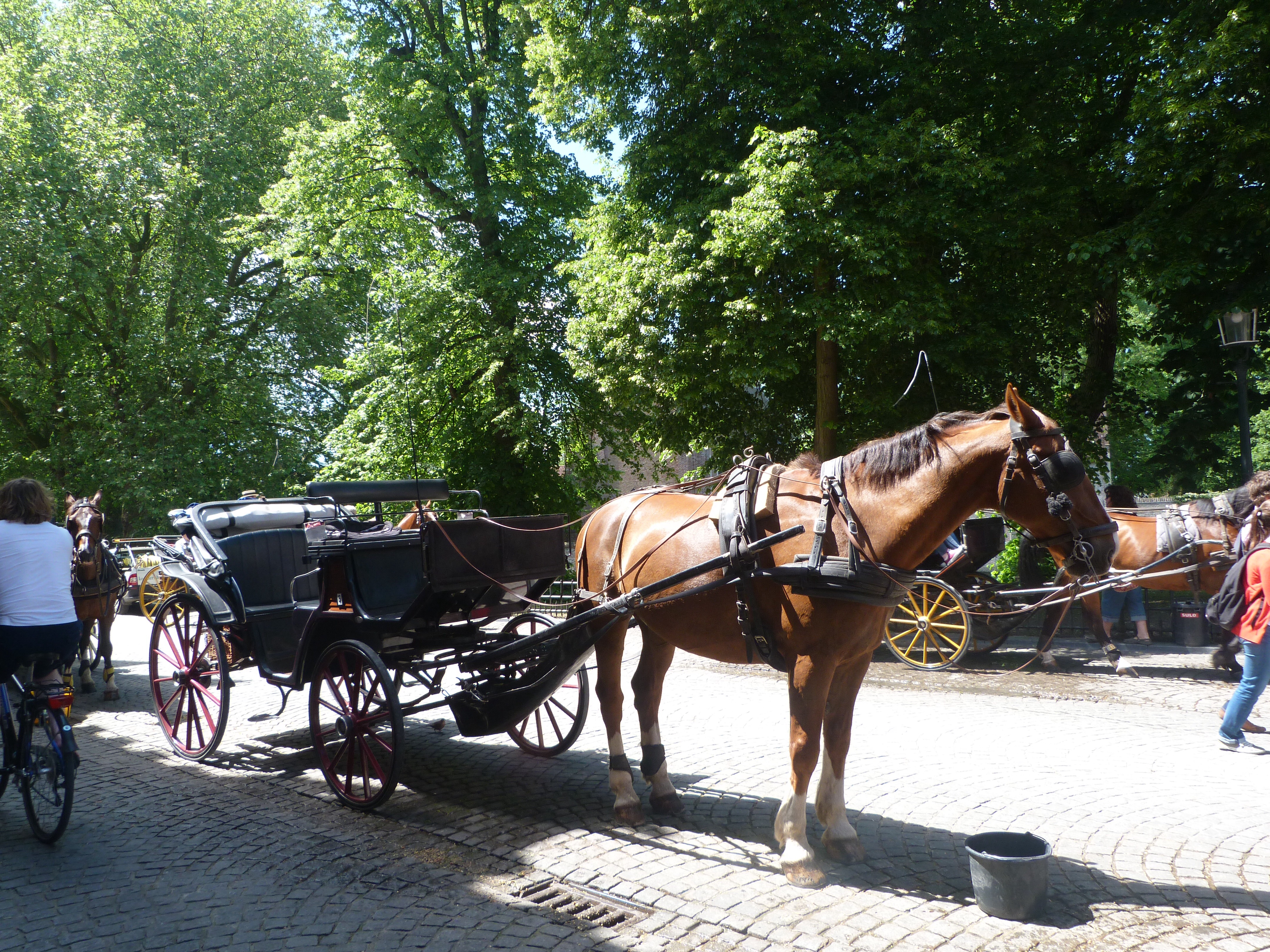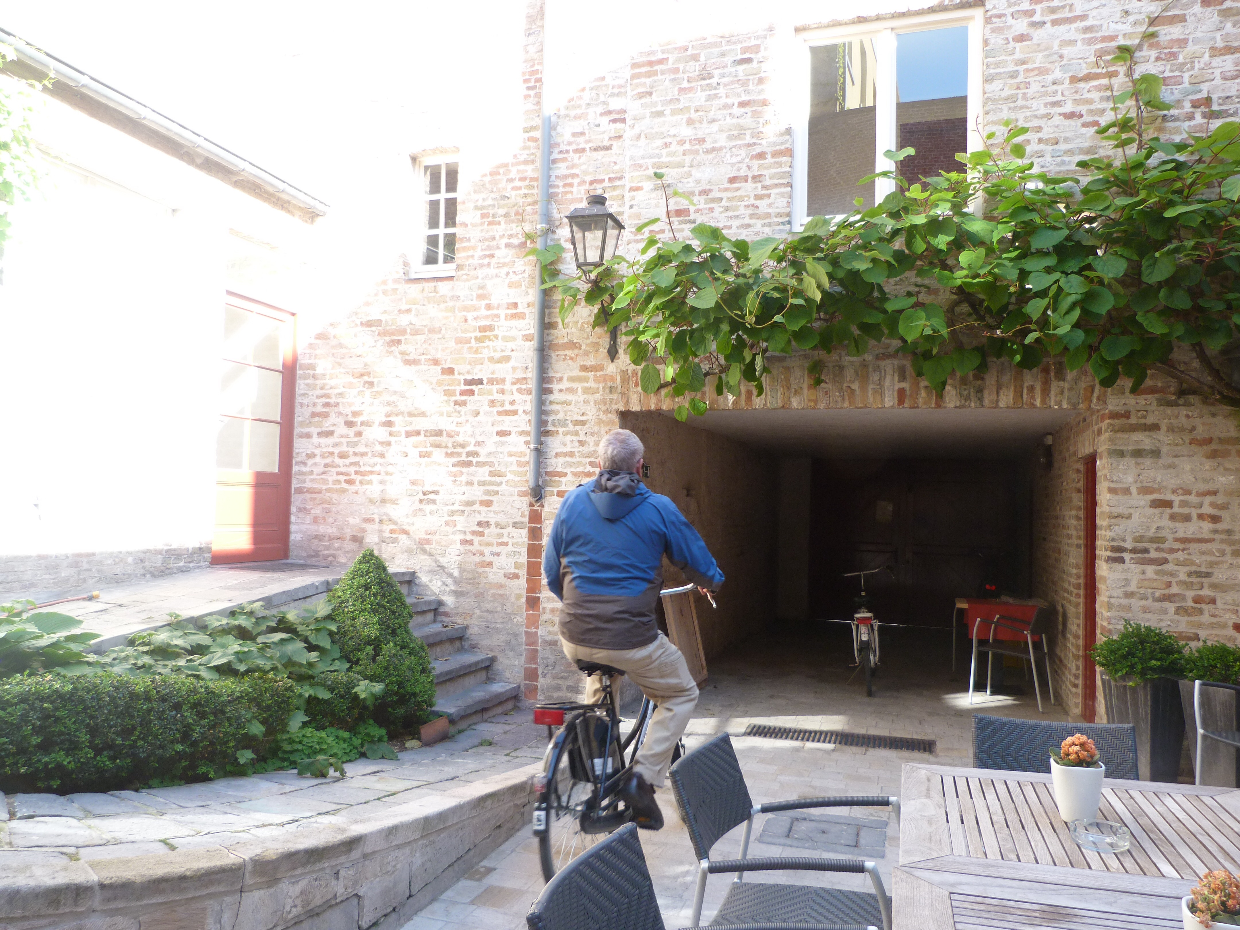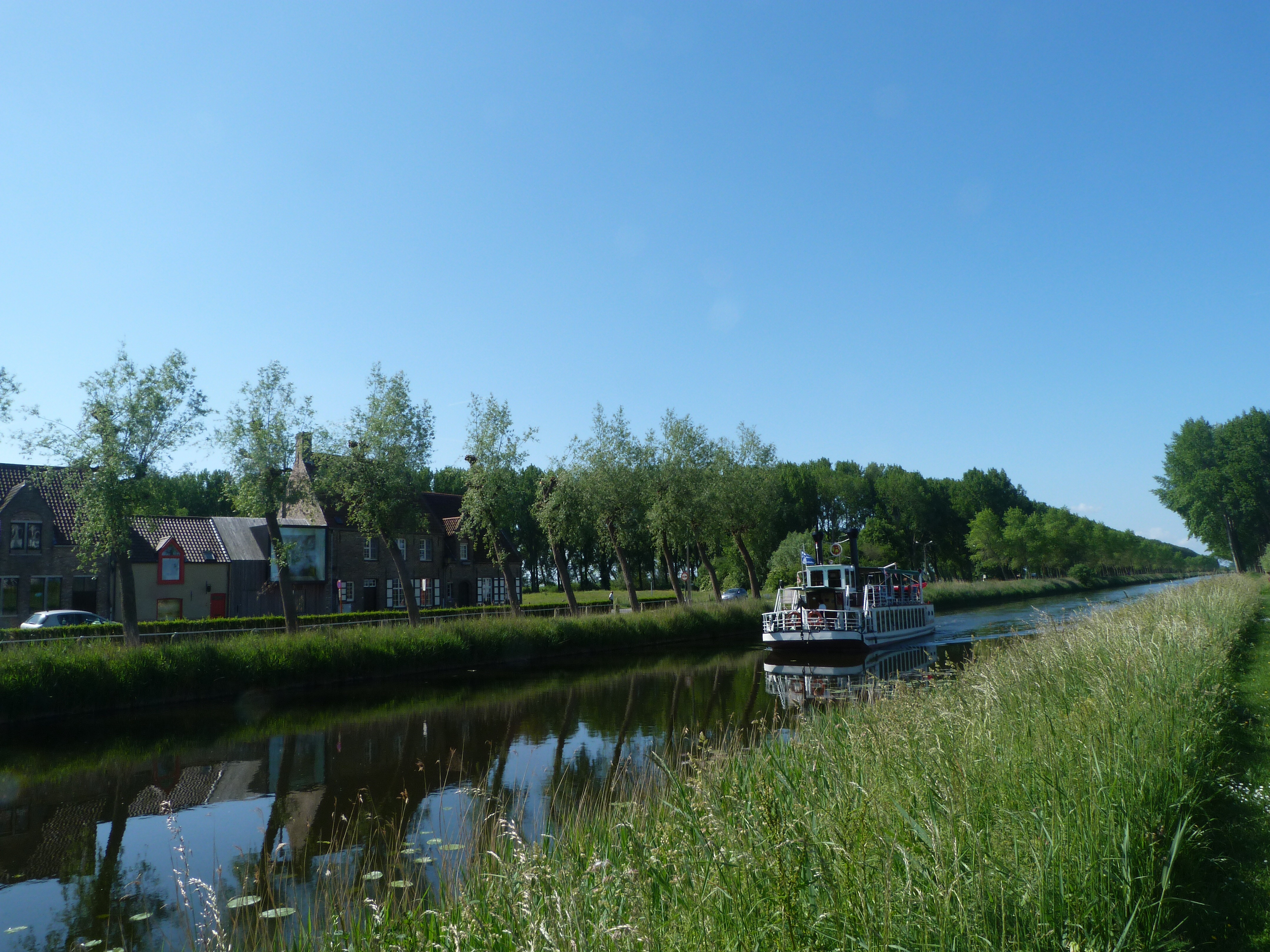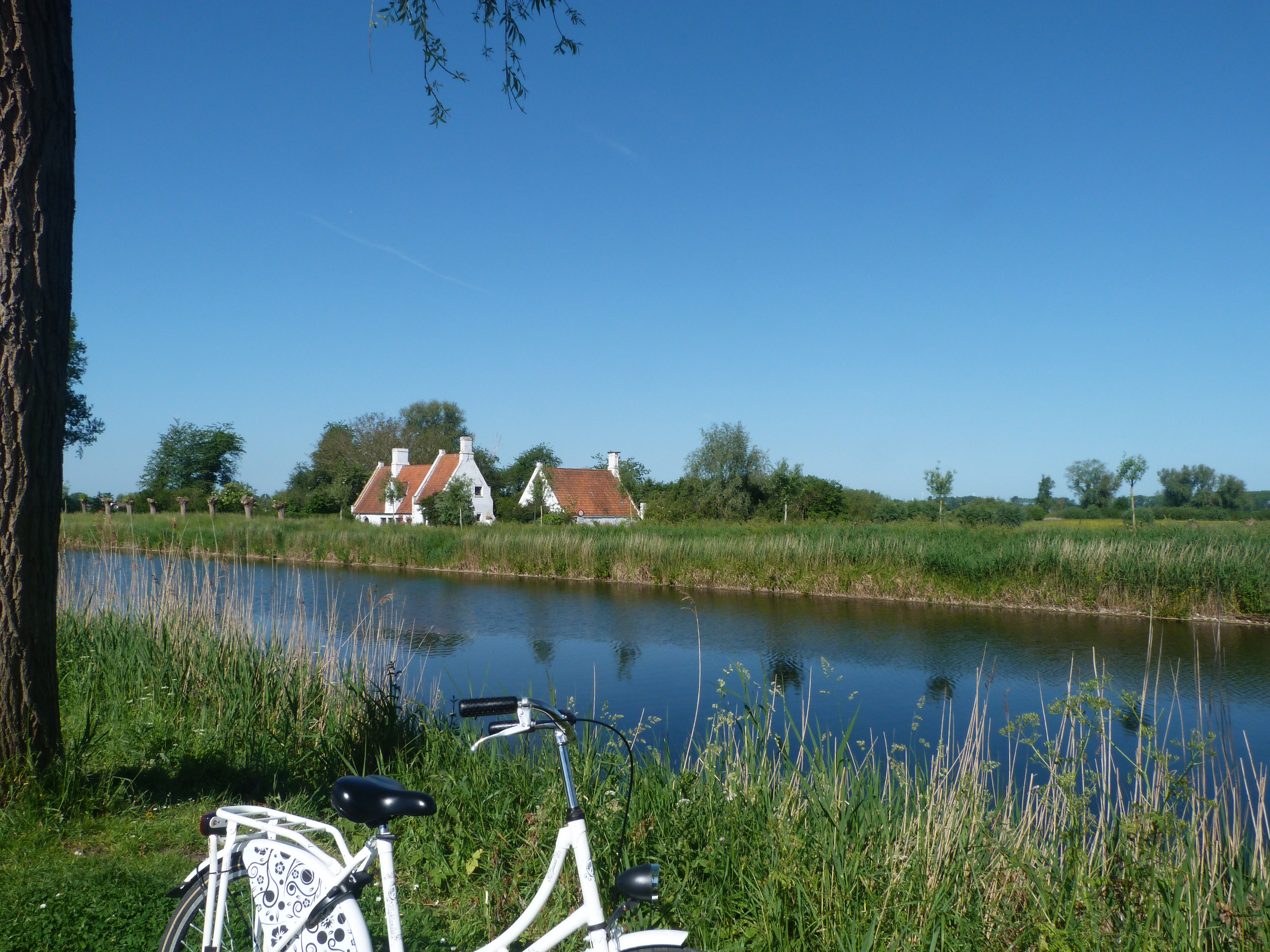 As mentioned in an earlier post, cycling is the preferred means of transportation for most in the Flemish lowlands. Our hotel stocks a good number of bikes so we borrowed 2 and rode along the canal toward Damme. The guidebook says to allow 2 hours and that’s about how long it took us to go there and back again. So far, it’s my trip highlight.