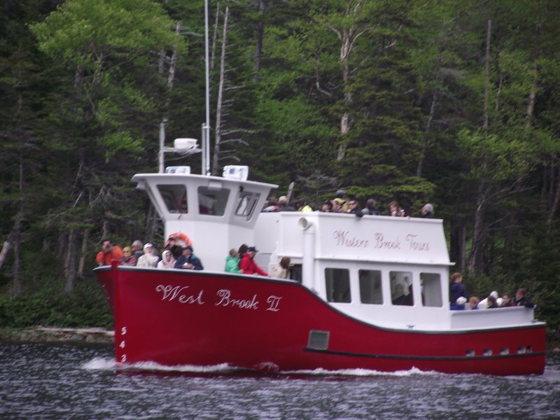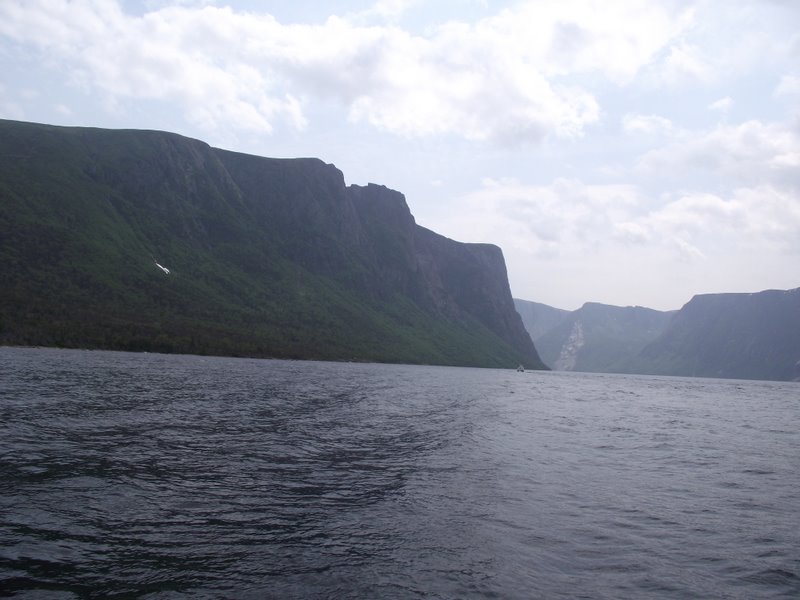 Surrounded by water and blessed with lakes, a visit to the province is certain to involve boats. We’ve been on two so far and plan for a couple more. Today we puttered around a lake which is surrounded by steep cliffs (http://www.canada-photos.com/w