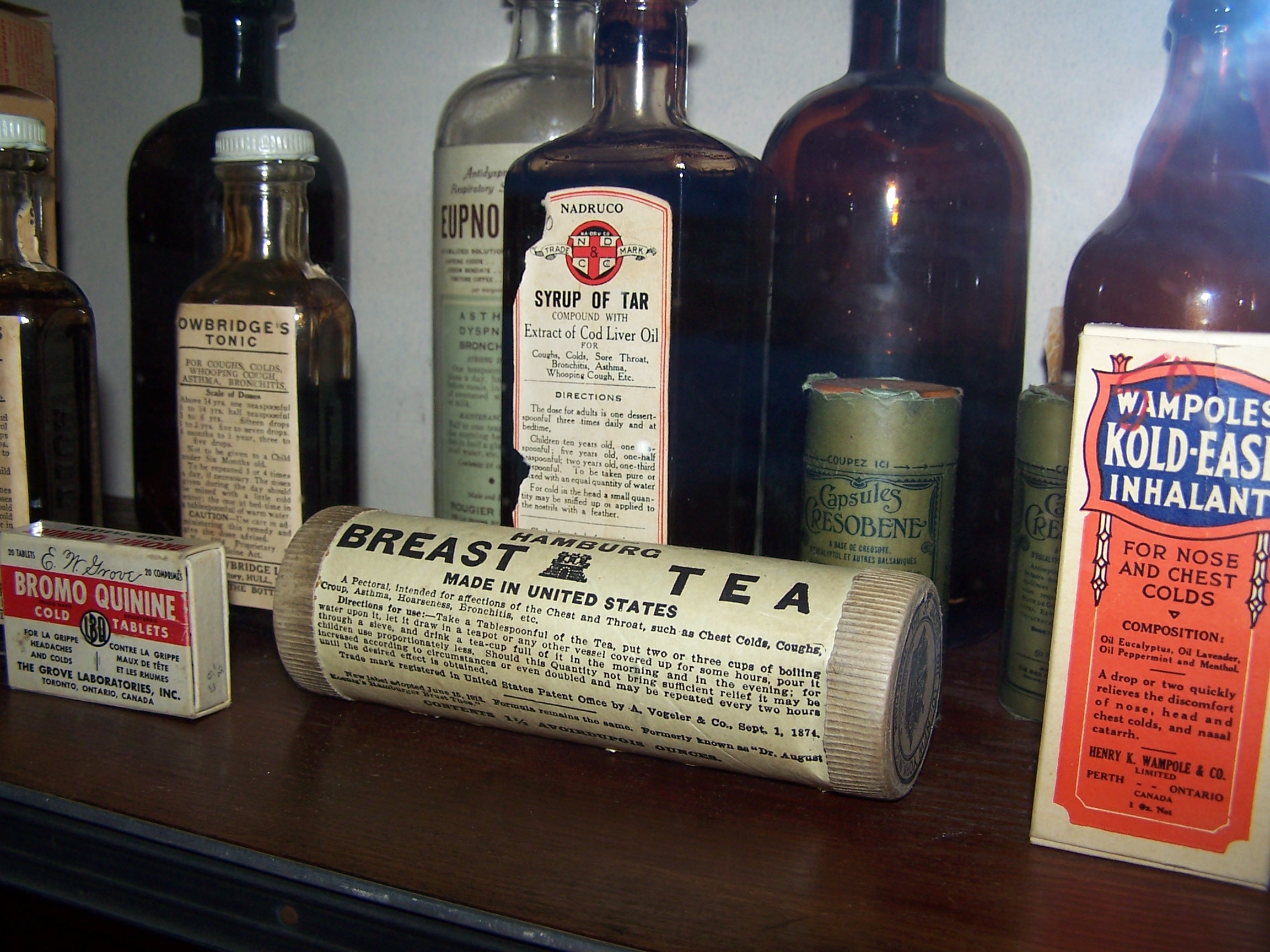 so well done that I lost myself in 1910 Saskatchewan for hours. The museum houses the longest indoor old western street in Canada and the detail is something else. The photo on the right is taken in the Mercantile and displayed everything from candy to poison to garden rakes to the kitchen sink. The one below is taken in the Pharmacy, which had hundreds of bottles and boxes of medicines, ointments, powders, and tinctures. The tea is said to relieve “Affection of the Breast.” Yes, you read correctly.