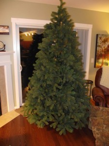 In an attempt at eco-responsibility we decided last year to invest in an artificial tree from Costco. It came with its own lights already entwined on every bow. We bought early to avoid the rush, assembled and decorated it for Dec. 1. Guests commented on how real it looked and how the only thing missing was the lovely pine fragrance. It was lovely until December 23 when the lights quit working, just in time for the big day. Gord and our son, Brendan, strung working lights over the non-working lights and jury-rigged it so no one could tell. Needless to say we took the tree back after Christmas, which looked suspicious but had to be done.
