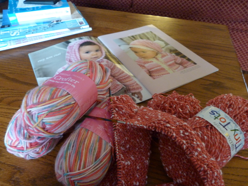 On the same outing, I popped in at Mad About Ewe, a boutiquey little knitting store that carries variegated washable yarn. I bought 6 skeins with the rest of my Christmas gift certificate, enough to make 2 newborn hooded cardigans. My daughter gave me the pattern book when her daughter was born so the pattern is all ready set to go. Sure to be next on my needles.