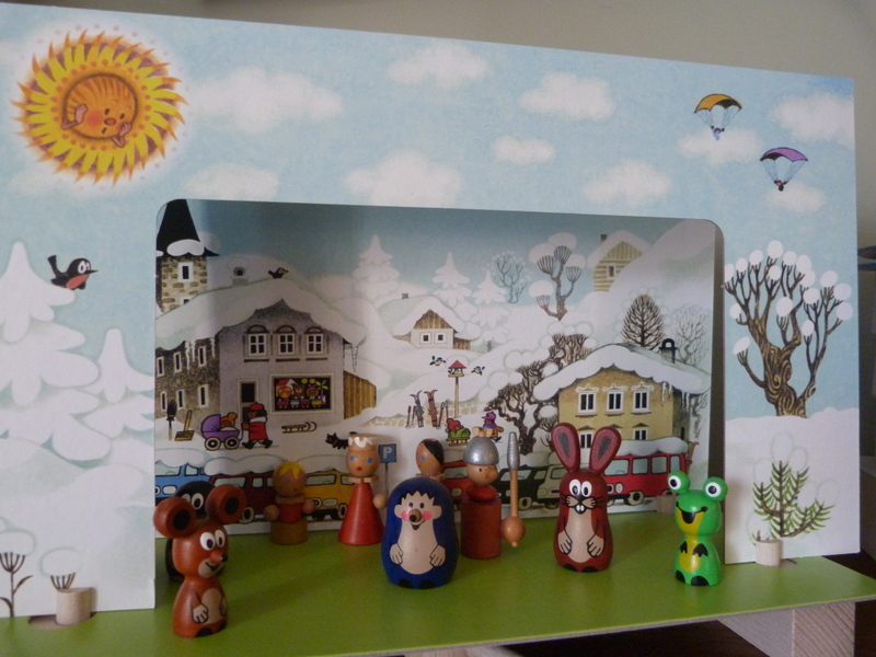 The theatre on the left is one I picked up in Prague where they make the most adorable toys; wooden and hand painted! I had one of these when the kids were young and they literally played it to tatters. Every intuitive grandparent knows to stock favourite toys for the grandkids. This one is a delight to add to our collection. I love it because it lends itself so beautifully to imaginative play.