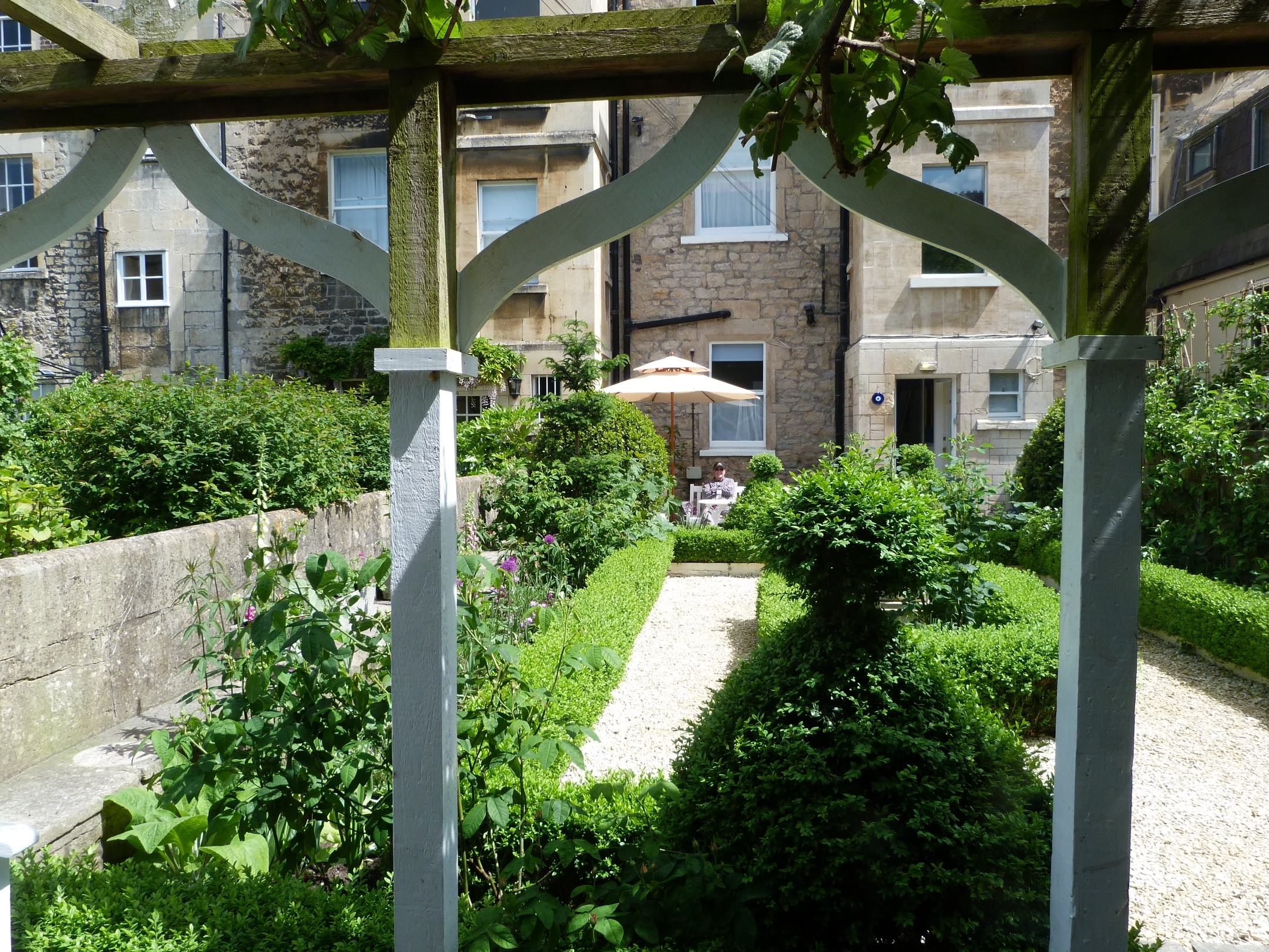The weather is changeable — about 15 degrees C but the people are warm, the food delicious and the gardens tidy, awaiting their annual planting. Everything is lovely and we’re enjoying ourselves immensely.