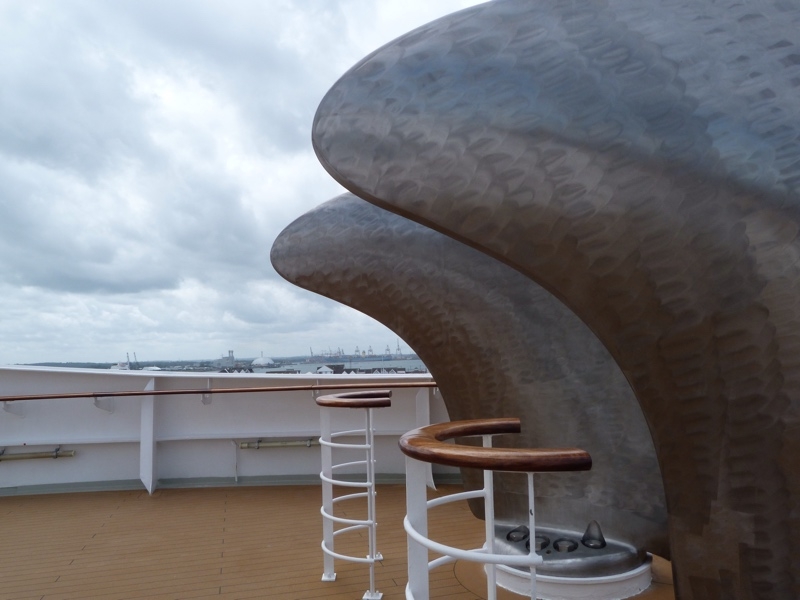Before we lose Internet for the next 8 days, we thought it might be fun to post a few photos of our champagne walk around the deck of Queen Mary 2, our home for the next 8 days as she makes her way across the mighty Atlantic. First port is Halifax on day 6 where we hope to snap a photo of the ship from bow to stern. Our cabin is cozy and the mood on board is jovial as we set sail in an hour or so. We’re ready for a quiet passage after a whirlwind tour of Great Britain’s marvellous isle.
